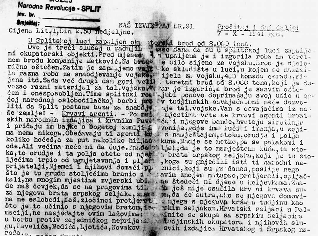 Posljednjih petnaest dana mjeseca moglo se zaista zapaziti nastavljanje subverzivne aktivnosti kojim manjim djelom sabotaže na željezničkoj pruzi na dionici Split - Kaštela i, češće, na telefonskim i telegrafskim prugama, novim subverzivnim natpisima na zidovima kuća, širenjem letaka komunističkog sadržaja, napadom na patrole i pojedine vojnike u službi nadziranja željezničke pruge. (…)