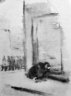 Nijemac ubi našeg druga, Fila Perka, mirno, bez riječi, iako taj pedesetogodišnjak nije dao nikakvog povoda. Tu odvojiše žene i djecu mlađu od petnaest godina. Sad ljude zahvati još veći strah, neopisiv, užasan. Više nitko ne misli da će biti spasa. Jedino se očekuje strijeljanje.