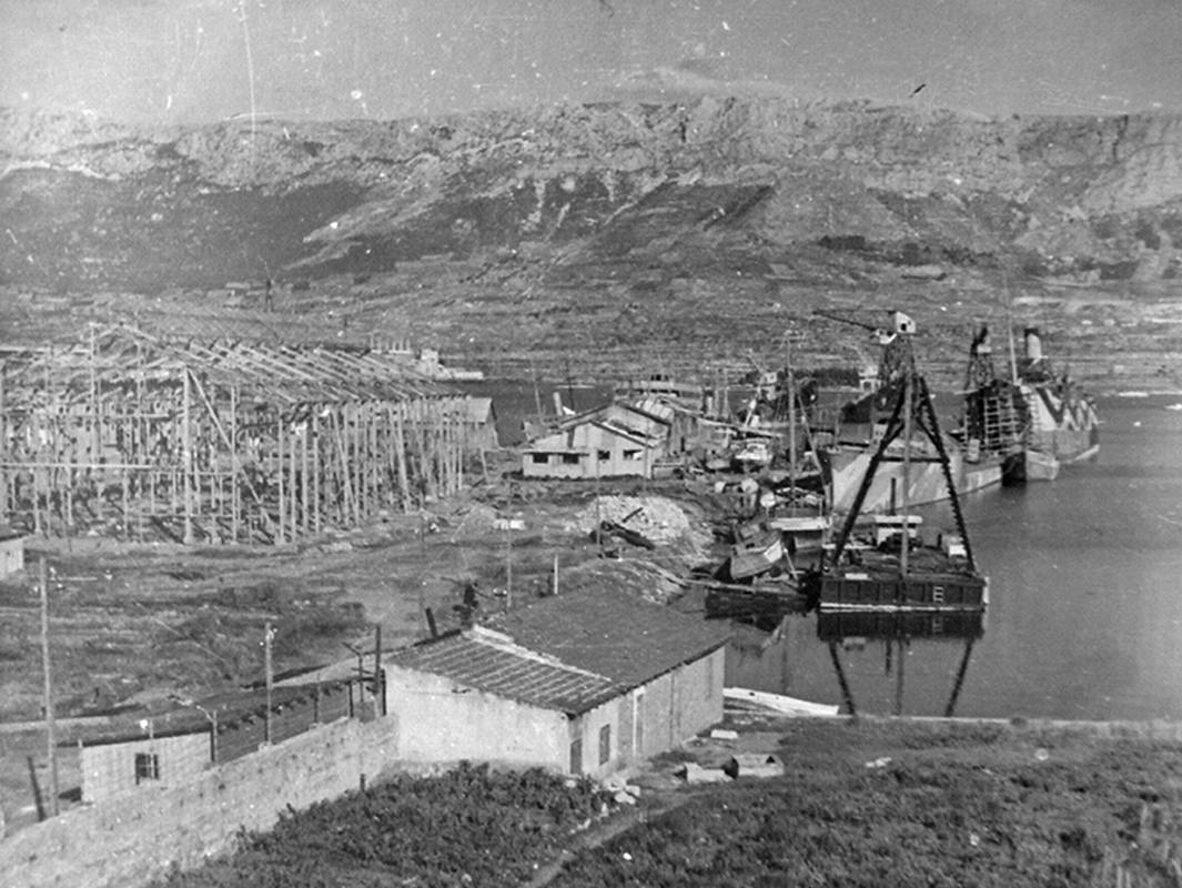 - U dva navrata saveznički avioni bombardirali su Split. Tom prilikom naročito je stradalo brodogradilište. Izvještaj Kotarske oblasti Split, Kronologija