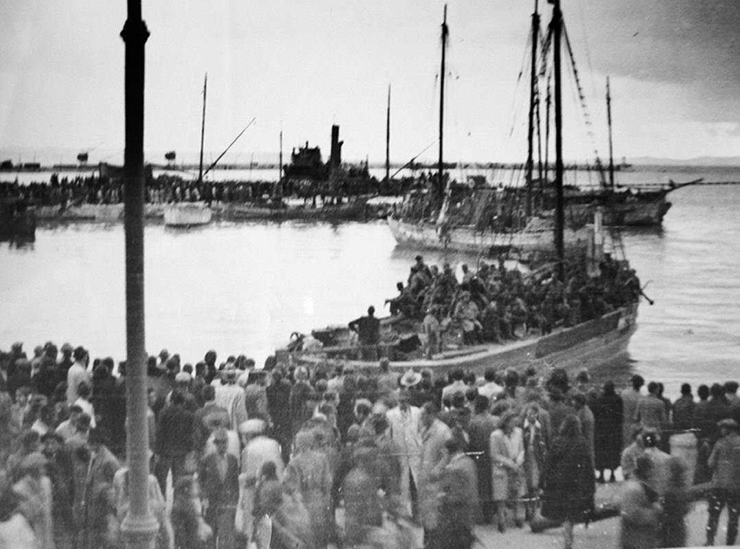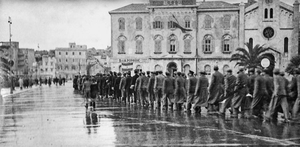 U zarobljeničkom stroju. Kolona zarobljenih domobrana i mornara na Rivi. Mnogi od njih uključili su se u NOV