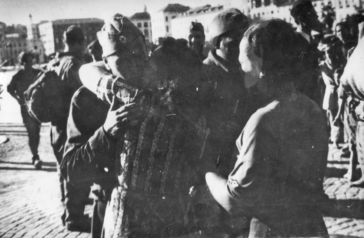 - Partizani iz pravca Žrnovnice promarširali su kroz gusti špalir građanstva preko Obale, koja je usprkos kiši bila prepuna. Promarširaše uz oduševljeno pljeskanje.