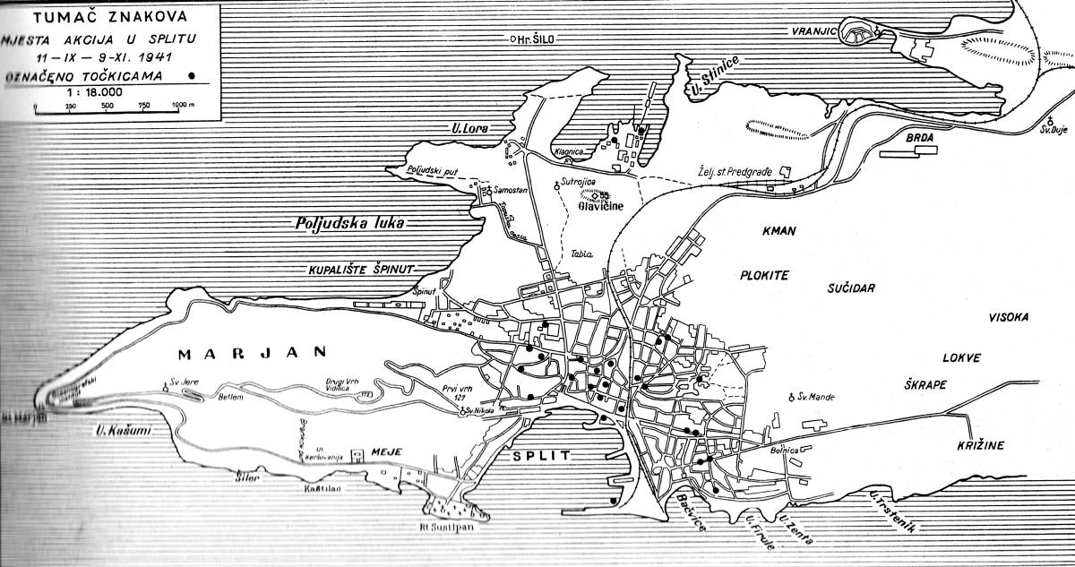 Posljednjih petnaest dana mjeseca moglo se zaista zapaziti nastavljanje subverzivne aktivnosti kojim manjim djelom sabotaže na željezničkoj pruzi na dionici Split - Kaštela i, češće, na telefonskim i telegrafskim prugama, novim subverzivnim natpisima na zidovima kuća, širenjem letaka komunističkog sadržaja, napadom na patrole i pojedine vojnike u službi nadziranja željezničke pruge. (…)