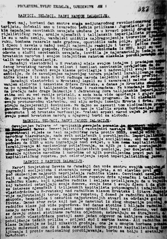 - U Splitu, u Ulici Radunica, na više mjesta po zidovima kuća je nacrtan amblem srpa i čekića i ispisane parole: »Živio Staljin - dolje fašizam«. Kronologija