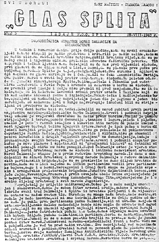 - U Splitu omladina radi pod najtežim uvjetima terora; ljotićevci i mačekovci špijuniraju i denunciraju napredne omladince. S obzirom na borbenost i tradiciju splitske omladine, broj od 297 skojevaca, koliko broji ta organizacija u Splitu, je premalen. Gizdić, 1943., 27 .