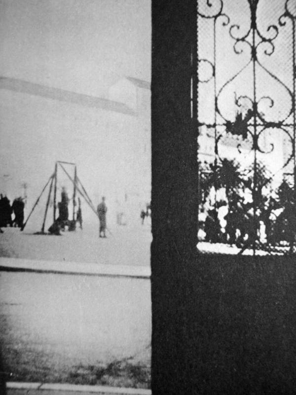Nijemci u gradu - vješala na Rivi. Grupa njemačkih vojnika pred hotelom Ambasador na Soluratu; Vješala pred samostanom sv. Frane na Obali