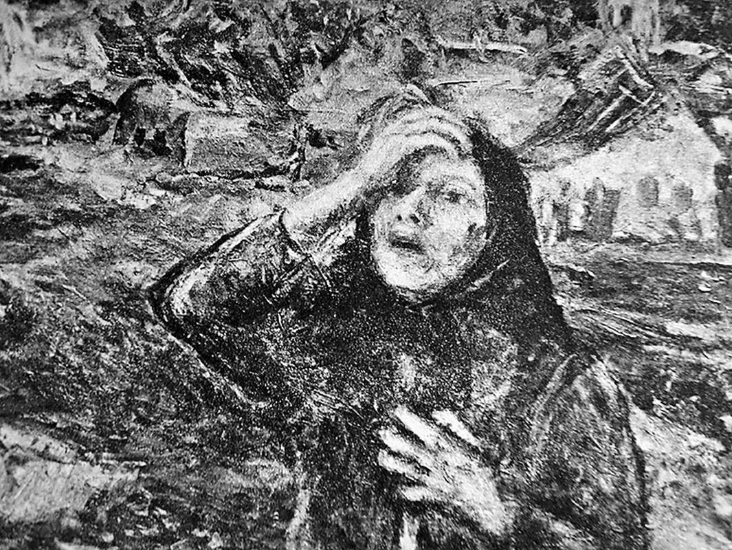 - Žalosna povorka Židova kreće polagano prema tvrđavi Gripe. Svatko nosi svoju prtljagu, netko bogatu, a netko siromašnu. Idu oni polako, rezignirano, spuštenog nosa prema zemlji i vape za pravdom, vape za osvetom. Ali su prestrašeni i jadni… Bego
