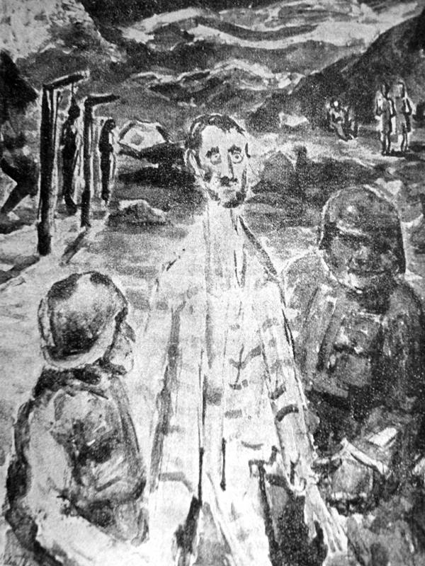 Nijemac ubi našeg druga, Fila Perka, mirno, bez riječi, iako taj pedesetogodišnjak nije dao nikakvog povoda. Tu odvojiše žene i djecu mlađu od petnaest godina. Sad ljude zahvati još veći strah, neopisiv, užasan. Više nitko ne misli da će biti spasa. Jedino se očekuje strijeljanje.