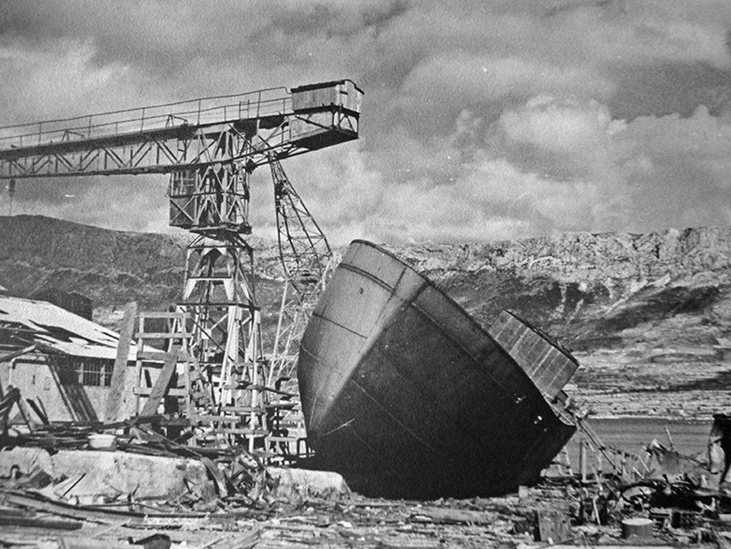 - Poslije zračnih napada i nastalih novih oštećenja, rad u Brodogradilištu je praktično obustavljen. Izvještaj Zapovjedništva mornarice NDH, 9./413.