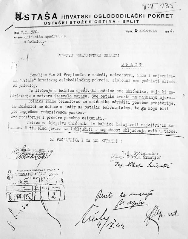 Većinu ustaških funkcionara podgriza uvjerenje u izgubljeni rat. Veliki dio ustaša koji zauzimaju čak i one najodgovornije položaje (Nardelli, Luetić[1] itd) otvoreno govore protiv njemačke i Poglavnikove politike, ali nisu spremni ništa pridonijeti slomu. Tim pričanjima žele opravdati sebe jer se boje sutrašnjice. Željno očekuju savezničku invaziju u uvjerenju da će spasiti svoju glavu. Komunista se plaše, a ako po koji od njih simpatizira sa NOP-om, to je prema njihovom tumačenju iz razloga što se u NOV-u nalazi velik broj Hrvata, a protiv njih oni nemaju ništa. Izvještaj Mjesnog obavještajnog centra u Splitu, 10./13.