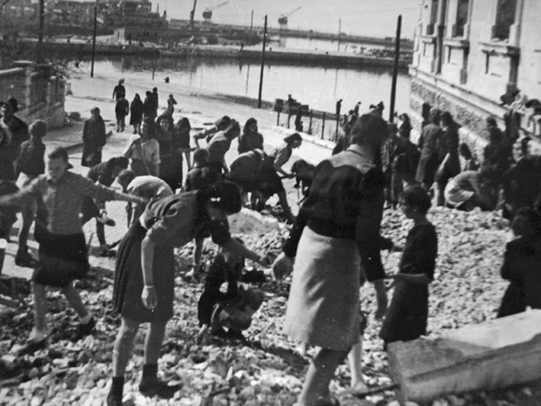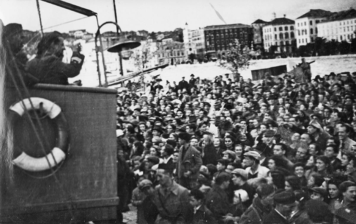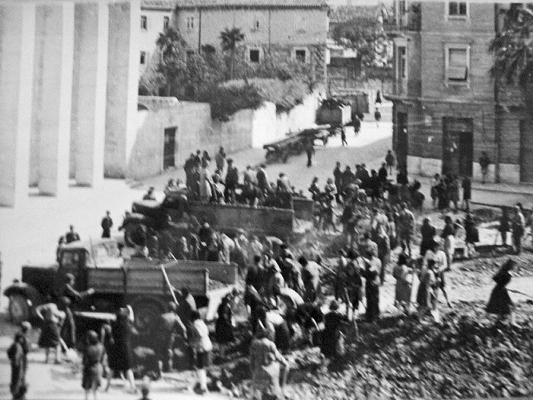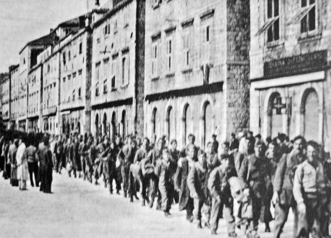 U zarobljeničkom stroju. Kolona zarobljenih domobrana i mornara na Rivi. Mnogi od njih uključili su se u NOV