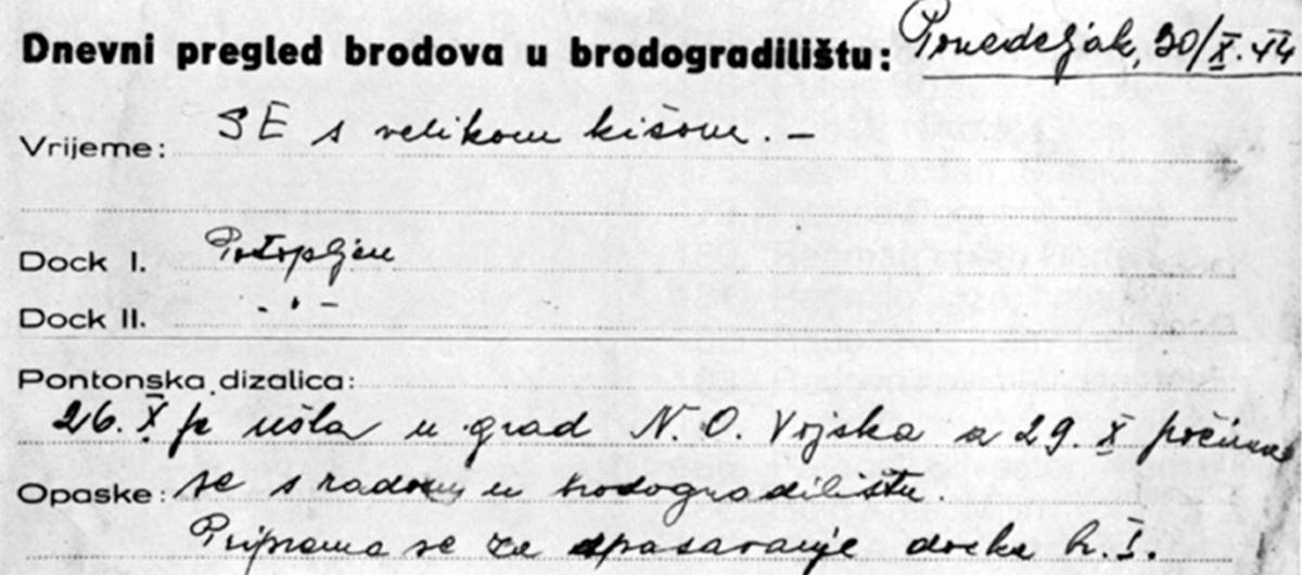 - Odjeljenje za pomorski saobraćaj Štaba Mornarice NOVJ oglašava da će od 8. siječnja 1945. biti uvedeno obavezno izdavanje putnih karata za putovanje na parobrodima redovitih pruga: Split - Korčula, Korčula - Gruž, Split - Vis, Split - Zadar. Sada se putuje besplatno, s propusnicom za putovanje. Kisić