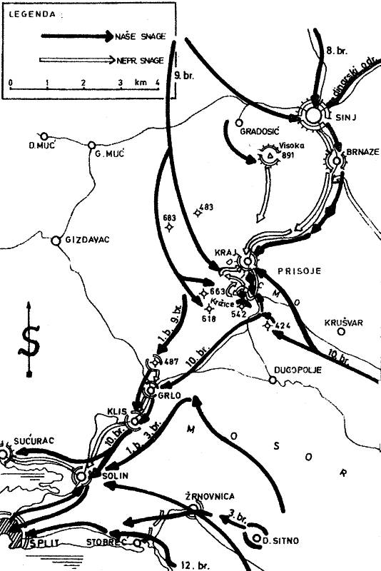- Tokom jutra borci 10. i 9. dalmatinske brigade ušli su u Solin, gdje je zarobljeno oko 200 neprijateljskih vojnika. Anić, 150.