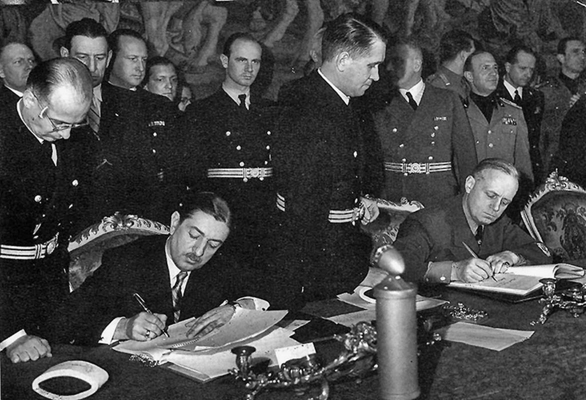 Između Njemačke i Francuske potpisano je 22. lipnja primirje u Compiegneu, na istom mjestu gdje je potpisana kapitulacija Njemačke u Prvom svjetskom ratu. Dva dana kasnije potpisano je i primirje između Italije i Francuske, iako talijanska vojska nije imala uspjeha u ratnim operacijama protiv Francuske. Francuska se službeno predala 25. lipnja u 0.35 sati, te je podijeljena na dva dijela. Sjeverni dio zajedno s atlantskom obalom je okupirala Njemačka, dok je u ostatku Francuske formirana profašistička marionetska vlast na čelu s maršalom Pétainom.