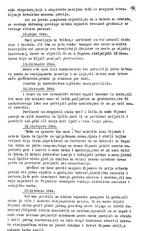 Početkom drugog svjetskog rata zbog invalidnosti prekida radne aktivnosti i piše svoj ratni Dnevnik. Godine 1945. nastavlja raditi kao privatnik, a od 1948. zapošljava se u Narodnom odboru kotara Split kao referent za trgovinu.